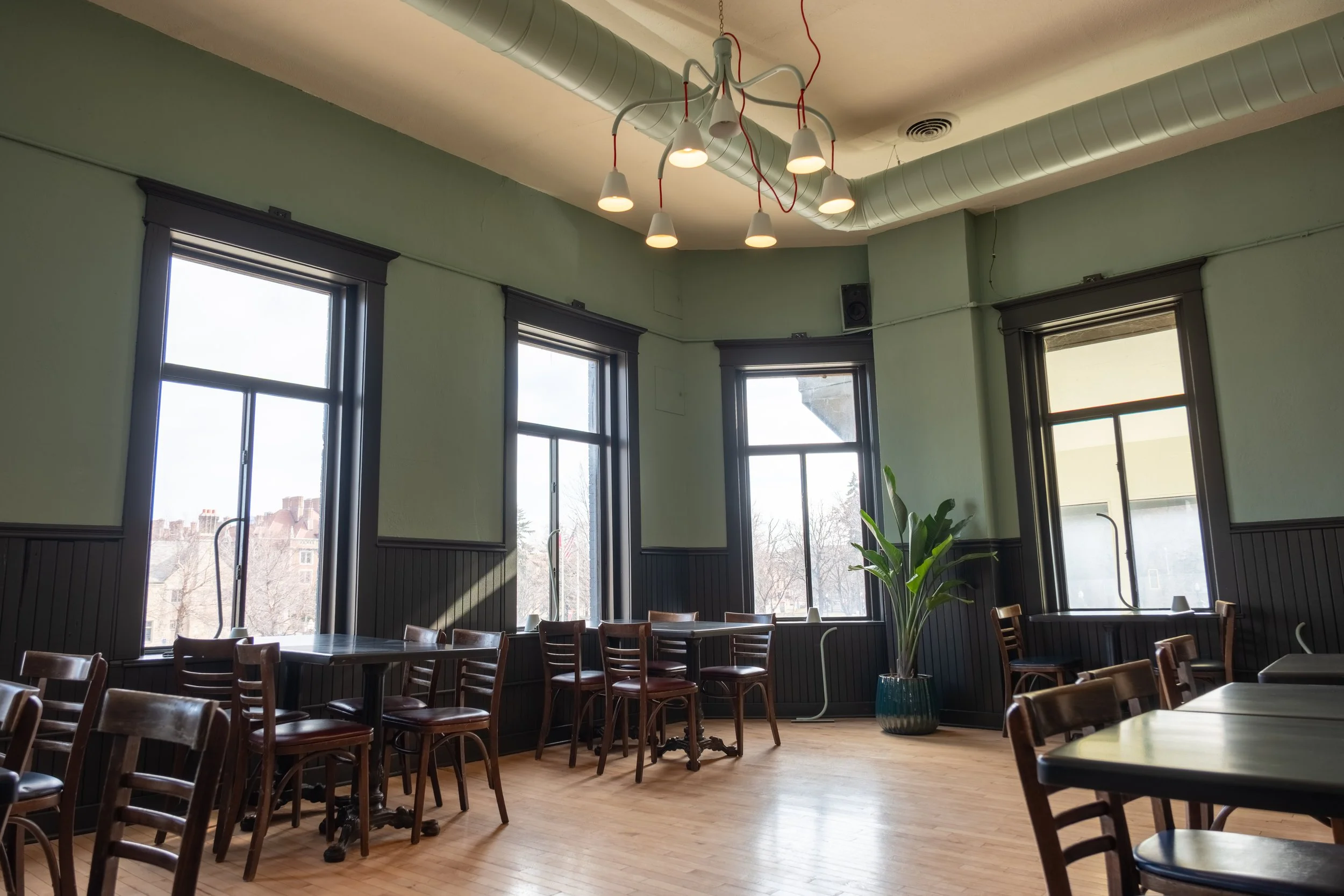 Host your next event in the heart of Dinkytown. Our café is available for private rentals outside of normal business hours, and our banquet room (pictured) can also be reserved during regular café hours.